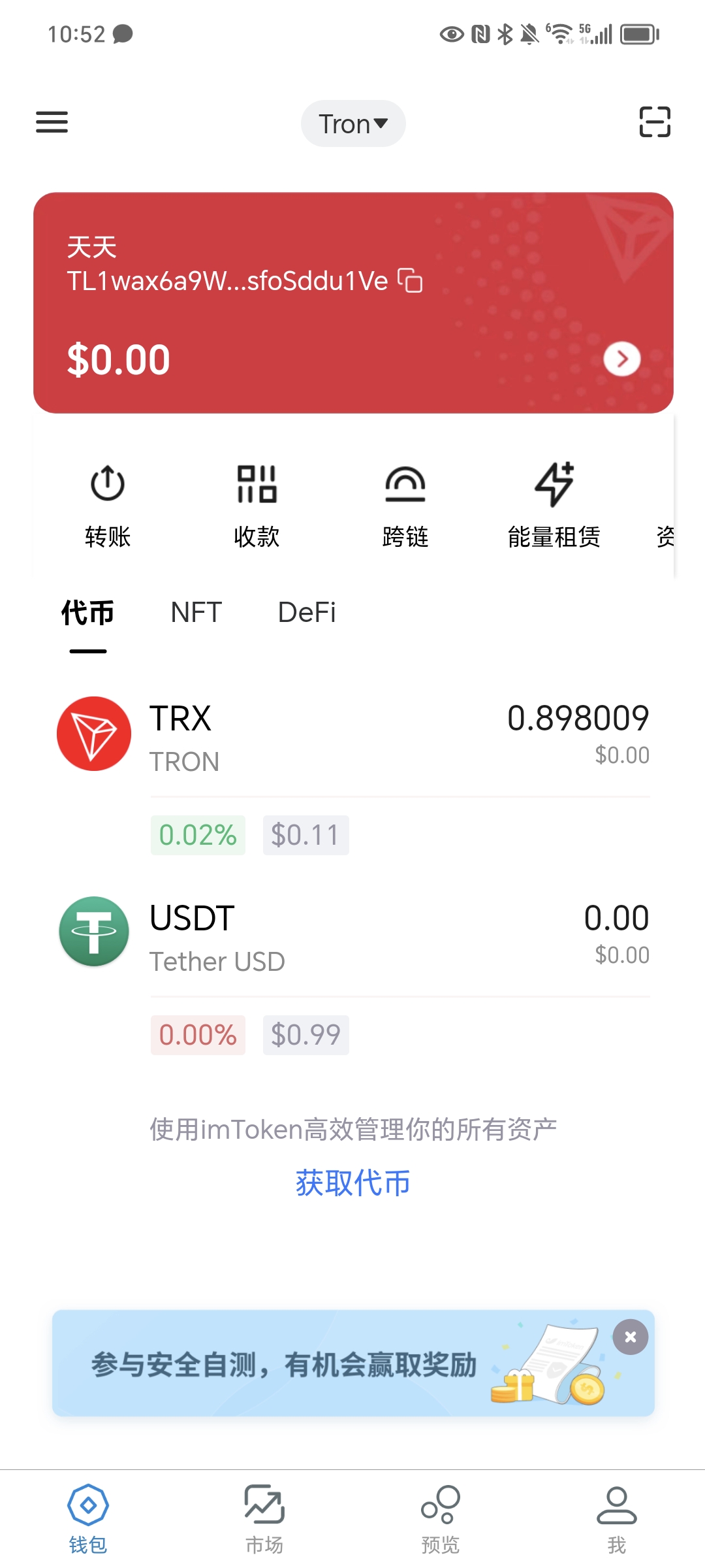 目前只有tron的功能,eth和btc都是摆设,tron全程上链,可以导入其他钱包的助记词
