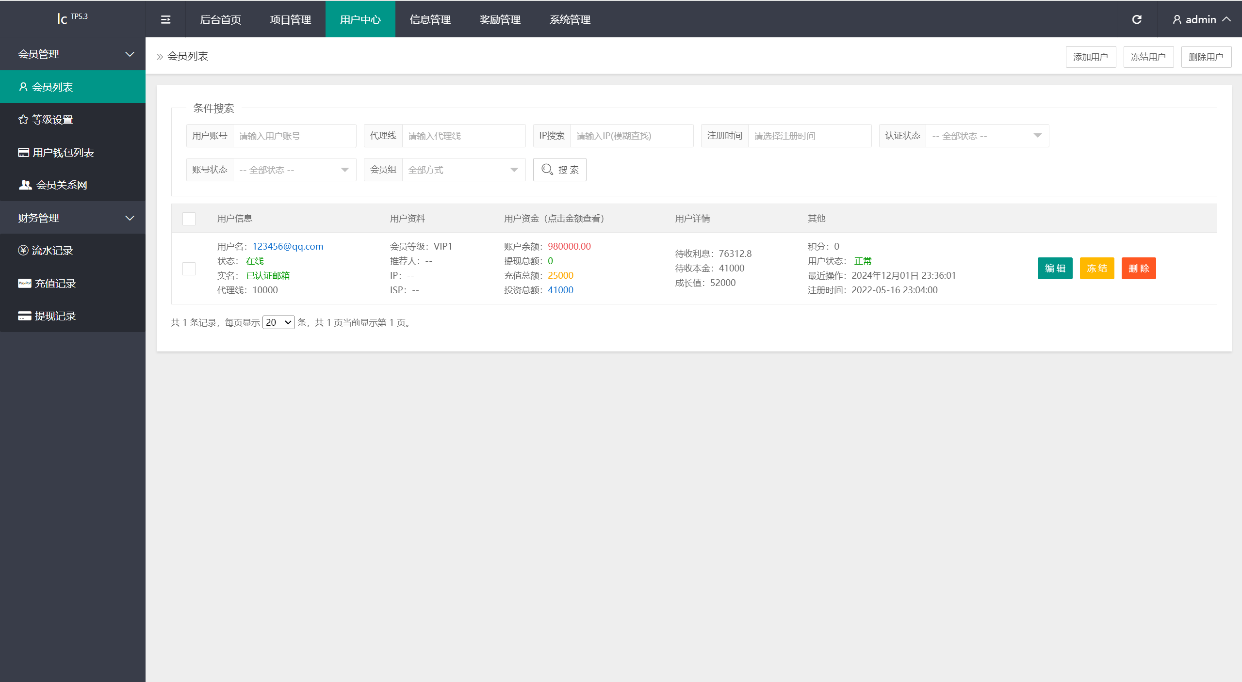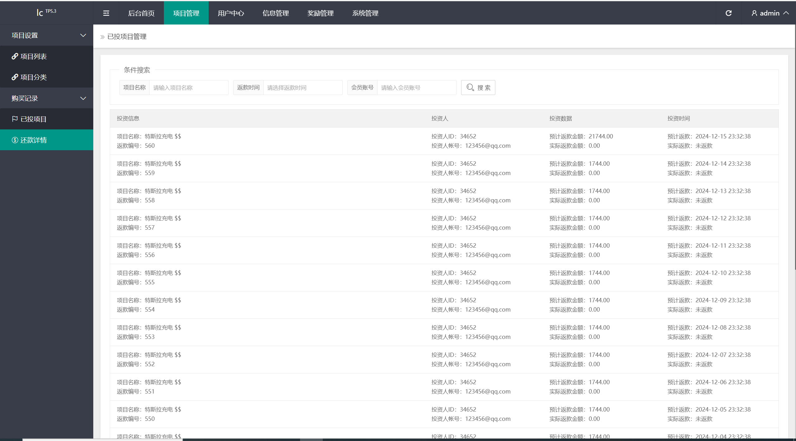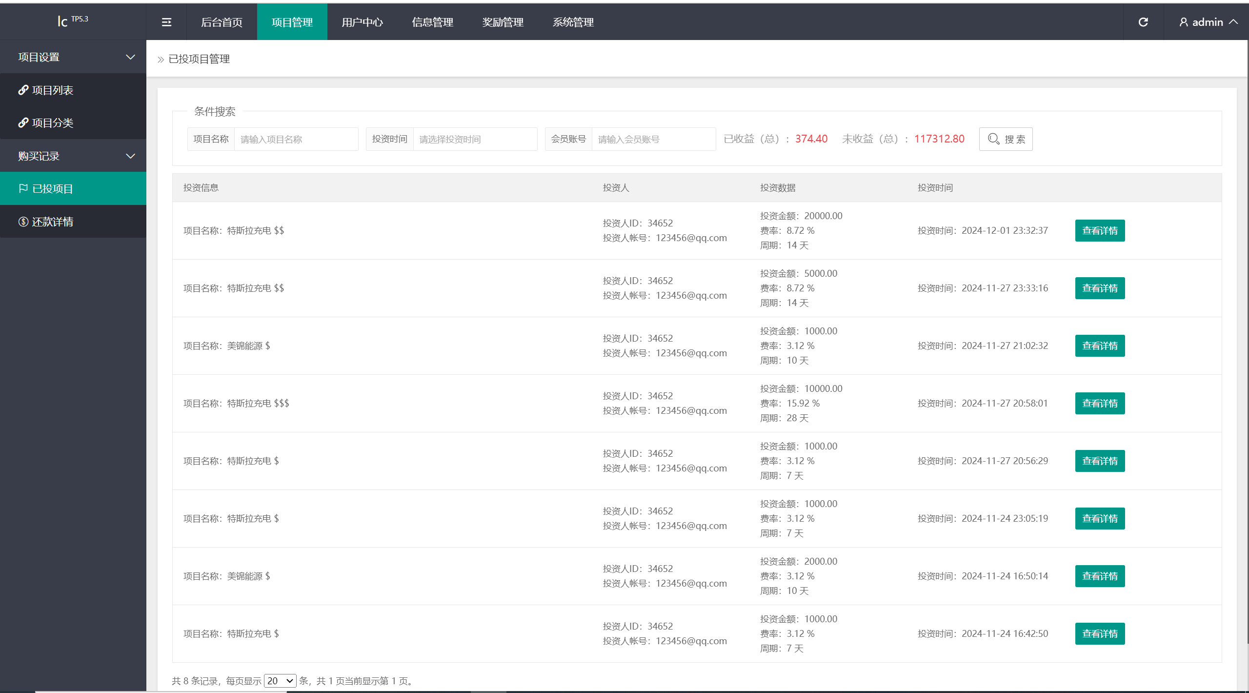 用户注册成功->认证邮箱->充值->购买项目->生成订单->根据设定的收益每日返利->