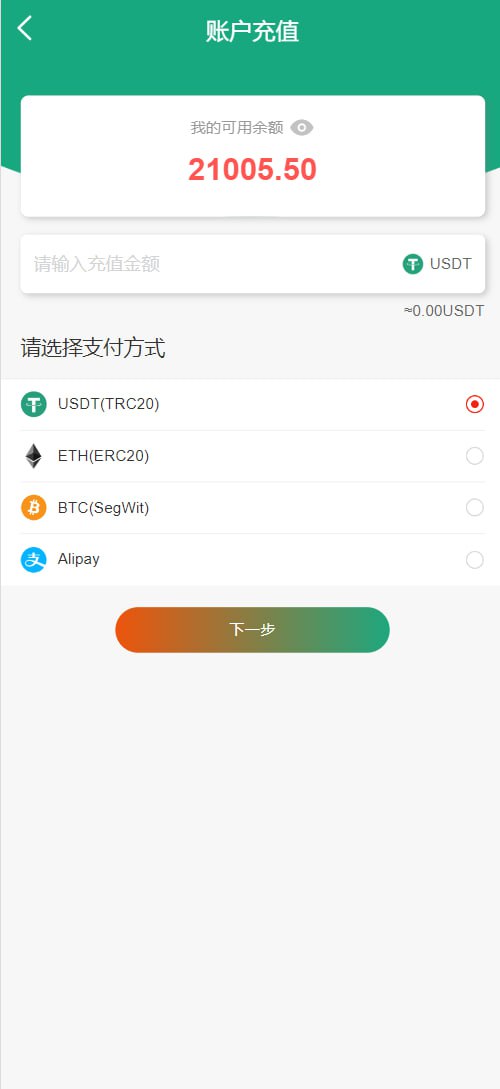 支付方式:USDT、BTC、ETH等货币、微信、支付宝、银行卡;