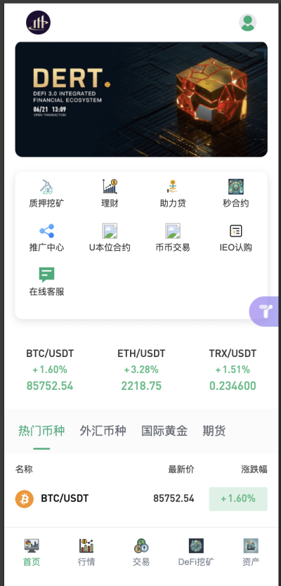多语言交易所-支持秒合约-期货-贵金属-能源-币币-国际黄金-U本位合约-DeFi挖-盗u无提示-开关盗u功能